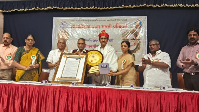 ‘पिंपरी येथील लोकशिक्षक बाबा भारती प्रतिष्ठान करीत असलेली माणूसधर्माची पेरणी हा धार्मिक सौहार्दाचा वस्तुपाठ आहे!’ असे गौरवोद्गार ८९ व्या अखिल भारतीय मराठी साहित्य संमेलनाचे अध्यक्ष डॉ. श्रीपाल सबनीस यांनी एस. एम. जोशी सभागृह, नवी पेठ, पुणे येथे सोमवार, दिनांक १३ ऑक्टोबर २०२५ रोजी काढले. पाली – मराठी भाषेचे पहिले शब्दकोशकार बाबा भारती यांच्या जन्मशताब्दीनिमित्त लोकशिक्षक बाबा भारती प्रतिष्ठान आयोजित जीवनगौरव पुरस्कार प्रदान करताना डाॅ. श्रीपाल सबनीस बोलत होते. माजी खासदार रामशेठ ठाकूर कार्यक्रमाच्या अध्यक्षस्थानी होते; तसेच रयत शिक्षण संस्थेचे सचिव विकास देशमुख, सहसचिव प्राचार्य डॉ. शिवलिंग मेनकुदळे, सहसचिव प्राचार्य डॉ. राजेंद्र मोरे, सहसचिव बंडू पवार, पद्मा दळवी आणि लोकशिक्षक बाबा भारती प्रतिष्ठानचे अध्यक्ष महेंद्र भारती यांची व्यासपीठावर प्रमुख उपस्थिती होती. याप्रसंगी माजी सनदी अधिकारी आणि रयत शिक्षण संस्थेचे चेअरमन चंद्रकांत दळवी यांना लोकशिक्षक बाबा भारती जीवनगौरव; तसेच ज्येष्ठ लेखिका ललिता सबनीस यांना श्रीमती सखुबाई जगन्नाथ भारती आई सन्मान प्रदान करून गौरविण्यात आले.