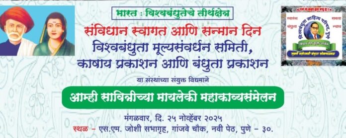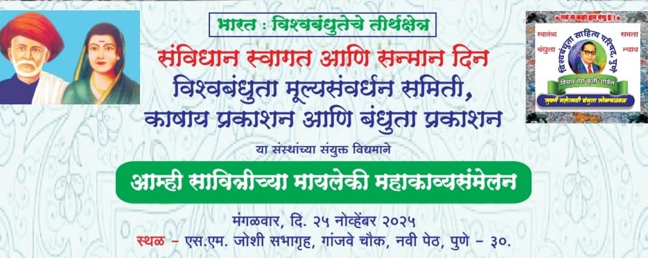 विश्वबंधुता साहित्य परिषद, पुणे यांच्या वतीने विश्वबंधुता मूल्य संवर्धन समिती, काषाय प्रकाशन आणि बंधुता प्रकाशन यांच्या संयुक्त विद्यमाने ‘आम्ही सावित्रीच्या मायलेकी महाकाव्य संमेलना’चे आयोजन करण्यात आले आहे. या कार्यक्रमात विविध क्षेत्रातील उत्कृष्ट कार्य करणाऱ्या महिलांचा सन्मान करण्यात येणार आहे. यामध्ये क्रांतीसुर्य सावित्री ज्योती पुरस्कार ,ज्ञानज्योती सावित्रीबाई फुले ज्ञानसाधना पुरस्कार, ज्ञानज्योती सावित्रीबाई फुले आदर्श विद्यार्थिनी पुरस्कार, संविधान सन्मान आदर्श पत्रकारिता पुरस्कार, ज्ञानज्योती सावित्रीबाई फुले आदर्श शिक्षिका पुरस्कार सदर पुरस्कार देऊन विविध क्षेत्रातील महिलांचा सन्मान करण्यात येणार आहे.