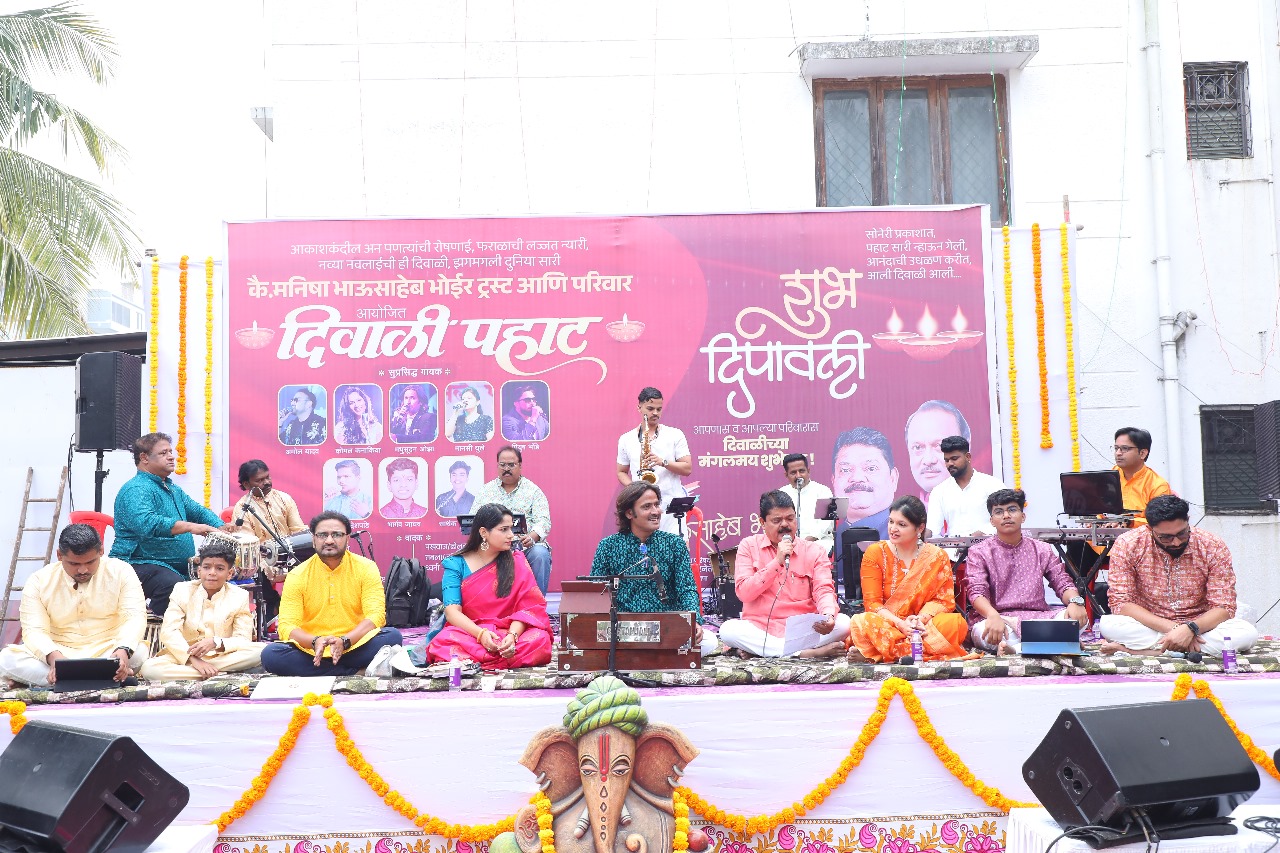 प्रकाशाच्या लखलखाटात आणि आनंदाच्या उत्सवी वातावरणात चिंचवड परिसरातील रसिक संगीतप्रेमींची दिवाळीची पहाट यंदा अविस्मरणीय ठरली. भोईर नगर येथील मनिषा स्मृती निवास येथे मा. नगरसेवक भाऊसाहेब भोईर यांच्या निवासस्थानी कै. मनिषा भाऊसाहेब भोईर ट्रस्ट आणि परिवार यांच्या वतीने सालाबादप्रमाणे आयोजित ‘सुरमयी दिवाळी पहाट’ हा विशेष सांस्कृतिक कार्यक्रम मोठ्या उत्साहात संपन्न झाला.