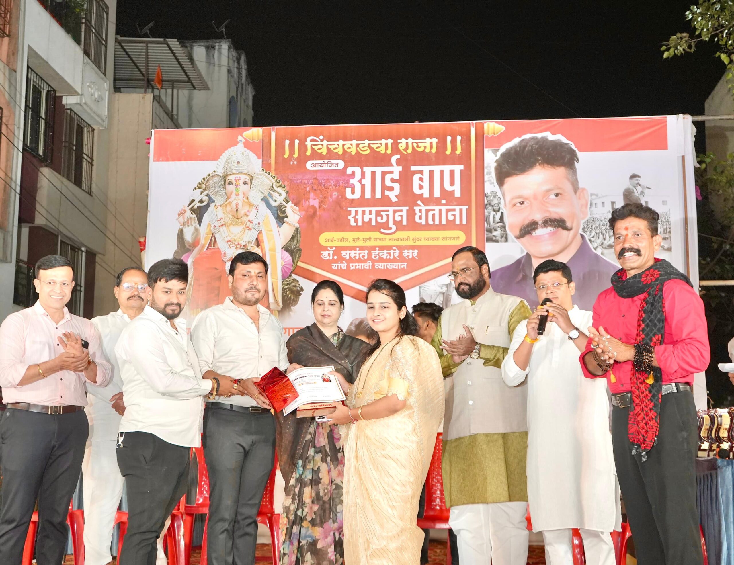 ‘चिंचवडचा राजा’ श्री.संत ज्ञानेश्वर मित्र मंडळ, चिंचवडगाव यांच्या वतीने आयोजित ‘चिंचवडगांव गुणवंत विद्यार्थी सन्मान सोहळा’ आणि “आई बाप समजून घेतांना” या विषयावरचे प्रेरणादायी व्याख्यान वक्ते – डॉ. वसंत हंकारे सर हा कार्यक्रम उत्साहपूर्ण, भावनिक आणि विचारप्रवर्तक वातावरणात यशस्वीरीत्या पार पडला यावेळी अतिशय भावपूर्ण वातावरणात पार पडलेल्या या कार्यक्रमाला चिंचवडगावातील विद्यार्थी व पालकांसहित हजारो चिंचवडकर नागरिकांनी हजेरी लावून जबरदस्त प्रतिसाद दिला.