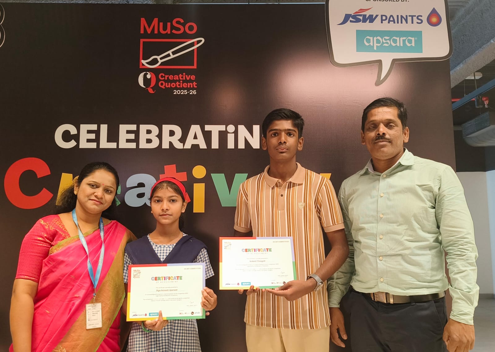आता ही चित्र मुंबईतील म्युझियम ऑफ सोल्युशन्स (MuSo) या नामांकित संग्रहालयात प्रदर्शनासाठी ठेवण्यात येणार आहेत. दिव्या उपर्वट हिने “भविष्यातील पर्यावरण आणि त्यासाठीचे उपाय” या विषयावर प्रभावी चित्र रेखाटले असून, पर्यावरण रक्षणासाठी जागृती निर्माण करणारा संदेश तिच्या चित्रातून झळकतो. तर वेदांत चौघुले याने “माझे स्वप्न” या विषयावर आपल्या कल्पनाशक्तीच्या माध्यमातून‘ मी एक वैज्ञानिक‘ हे प्रेरणादायी चित्र रेखाटले.