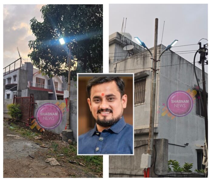 पिंपरी चिंचवड शहरातील मोशी परिसरातील आर के एच वृंदावन, रो हाऊस सोसायटी परिसरात अनेक दिवसापासून स्ट्रीट लाईट नव्हती, त्यामुळे येथील रहिवासी नागरिक, ज्येष्ठ नागरिक, महिला व मुली यांना रात्रीच्या वेळी येताना आणि जाताना मोठ्या प्रमाणात त्रास सहन करावा लागत होता. अनेक अडचणींचा सामना करावा लागत होता. या परिसरात नोकरी करणाऱ्या महिला, मुली व नागरिक मोठ्या प्रमाणात वास्तव्यास आहेत. रात्रीच्या वेळी नोकरीवरून घरी येताना त्यांना मोठा अडथळा निर्माण होत होता. या सर्व परिस्थितीची दखल या भागातील भाजपचे युवा नेते निखिल बोऱ्हाडे यांनी घेतली.