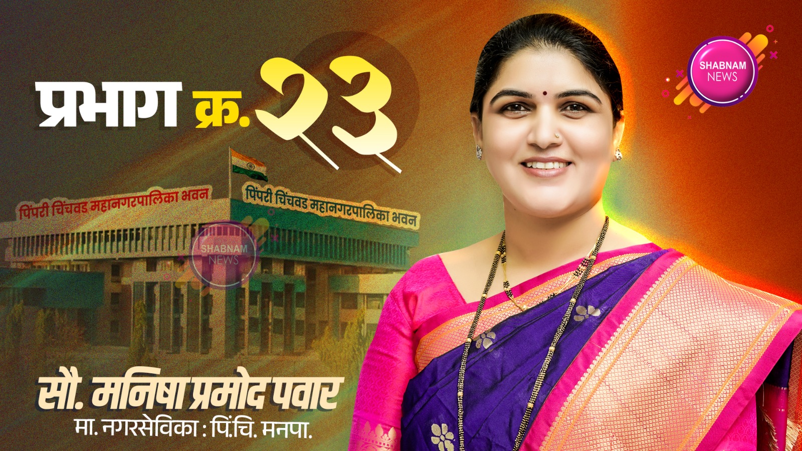 मागील नऊ वर्षापासून मनिषा प्रमोद पवार या सातत्याने आपल्या प्रभागात काम करीत आहेत. 2017 मध्ये प्रभाग क्रमांक 23 मधील मतदारांनी मनिषा प्रमोद पवार यांच्यावर विश्वास दाखवत त्यांना निवडून दिले, त्यानंतर मनिषा पवार यांनी प्रभागात विकासाच्या कामाचा धडाका सुरू केला. विकास कामे करताना संपूर्ण प्रभागात मतदारांशी आपुलकीचे नाते मनिषा पवार यांनी निर्माण केले. यंदाही मनिषा पवार यांनाच प्रभाग क्रमांक 23 चे नेतृत्व करण्याची संधी देण्याचे मतदारांनी ठरविले आहे.