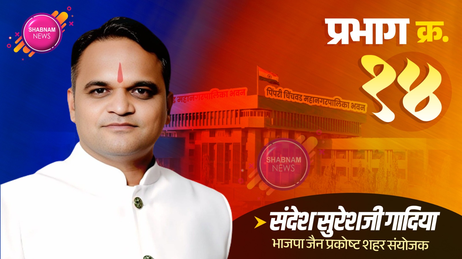 पिंपरी चिंचवड महानगरपालिकेची निवडणूक तब्बल चार वर्षाच्या प्रशासकीय कालावधीनंतर येत्या दोन महिन्यात संपन्न होत आहे. या महानगरपालिका निवडणुकीच्या संदर्भातील आरक्षण सोडत नुकतीच जाहीर झाली. या आरक्षण सोडती मध्ये अनेक दिग्गज नगरसेवकांना धक्का बसला असून त्यांचे राजकीय भवितव्य अडचणीत आले आहे. अशातच इच्छुक उमेदवारांची संख्या मोठ्या प्रमाणात वाढली आहे. भारतीय जनता पक्ष हा पिंपरी चिंचवड शहरातील एक नंबरचा पक्ष झाला असून या भाजपमधूनच इच्छुक उमेदवार मोठ्या संख्येने वाढली आहे . अशातच प्रभाग क्रमांक 14 मध्ये जैन समाजातून येणारे संदेश सुरेशजी गादिया हे सुशिक्षित इच्छुक उमेदवार पुढे आले आहे.