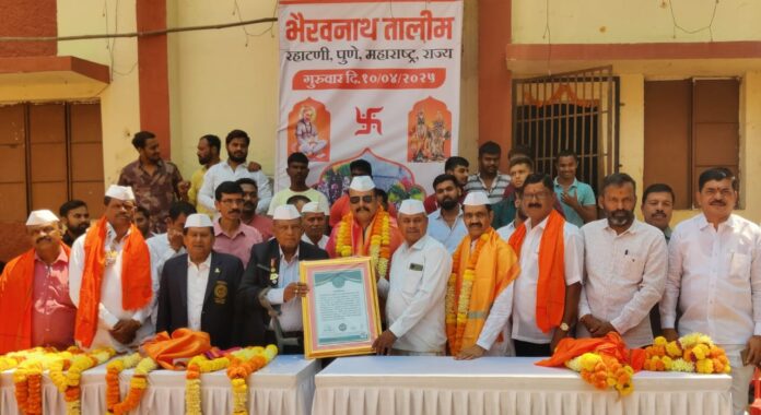 राष्ट्रीय उपाध्यक्ष दीपक हरके यांनी दिलेल्या शुभेच्छा संदेशाचे व जागतिक विक्रमाच्या नोंदणी प्रमाणपत्राचे वाचन टी. बी. शिंदे यांनी केले आणि संस्थेच्या वतीने भैरवनाथ तालीमचे सर्व पदाधिकाऱ्यांना आणि युवा खेळाडूंना हार्दिक शुभेच्छा दिल्या.