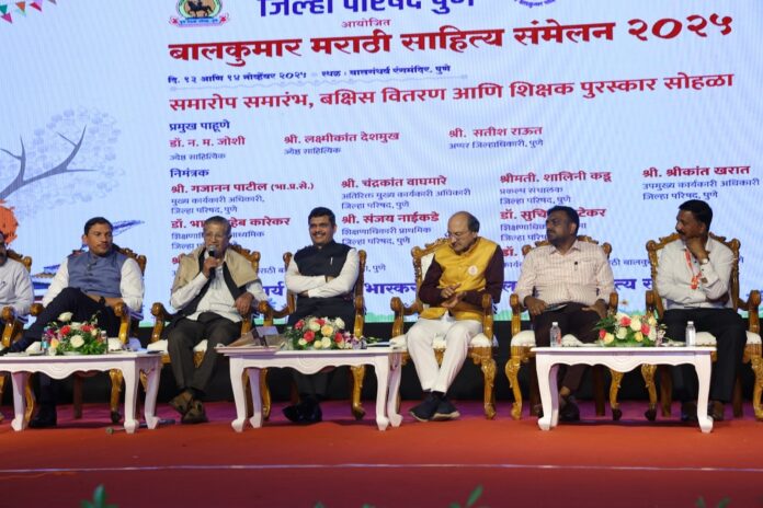 जिल्हा परिषद, पुणे आणि अमरेंद्र भास्कर मराठी बालकुमार साहित्य संस्था, पुणे यांच्या सहकार्याने आयोजित दोन दिवसीय बालसाहित्य महोत्सव – २०२५ हा १३ व १४ नोव्हेंबर रोजी बालगंधर्व रंगमंदिर येथे उत्साहात पार पडला. जिल्हा परिषद शाळांतील विद्यार्थ्यांसाठी पहिल्यांदाच एवढ्या मोठ्या प्रमाणावर साहित्य संमेलन घेण्यात आल्याने हा उपक्रम ऐतिहासिक ठरला. महोत्सवाची सुरुवात ३० शाळांमधील ६०० विद्यार्थ्यांच्या भव्य ग्रंथ-दिंडीने झाली. ज्ञानेश्वरीतील विविध व्यक्तिरेखांच्या वेशभूषेत सजलेल्या विद्यार्थ्यांच्या लेझीम, ढोल-ताशा आणि सांस्कृतिक सादरीकरणांनी वातावरण रंगून गेले.