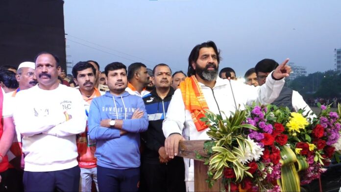 इंद्रायणी नदी स्वच्छता आणि पर्यावरण संवर्धनाचा संदेश देण्यासाठी विश्वविक्रमी ‘‘रिव्हर सायक्लोथॉन’’ 9 वे पर्व यशस्वीपणे पूर्ण करीत आहे. यावर्षी प्रथमच ‘स्टॅच्यू ऑफ हिंदुभूषण’ च्या आवारात हा उपक्रम यावर्षीपासून घेणार आहोत. ‘हिंदुभूषण’ स्मारकाची उभारणी सुरू  असताना अनेकांनी राजकारण आणि खोटे आरोप करण्याचा प्रयत्न केला. मात्र, सर्वांनी एकत्र आले पाहिजे, असे साद आमदार लांडगे यांनी घातली.
