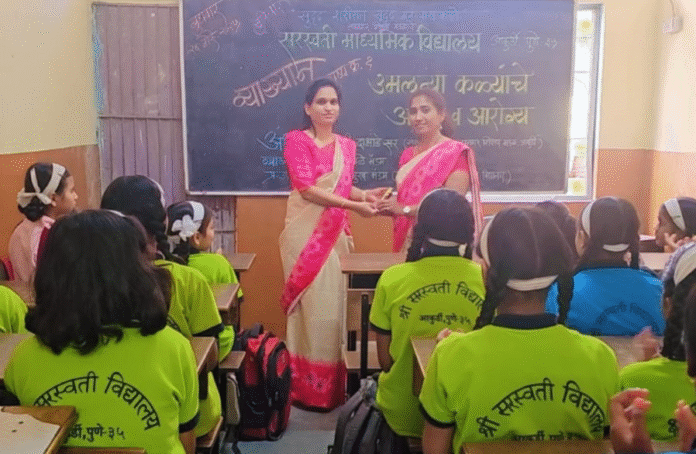 सरस्वती माध्यमिक विद्यालय,आकुर्डी,पुणे ३५ या शाळेत नियमित विविध उपक्रमांचे आयोजन करण्यात येत असते.आज,बुधवार दिनांक २६ नोव्हेंबर २०२५ रोजी प्रशालेत उत्साहात संविधान दिन साजरा करण्यात आला.तसेच इयत्ता ५ वी ते ७ वी च्या विद्यार्थिनींना “उमलत्या कळ्यांचे आरोग्य व आहार या विषयावर शाळेतील शिक्षिका सौ.प्रतिमा काळे मॅडम यांनी मार्गदर्शन केले.