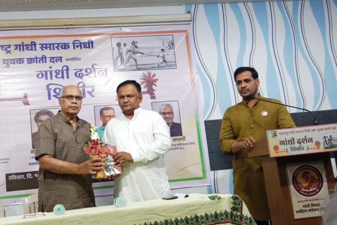 पुणे : महाराष्ट्र गांधी स्मारक निधी आणि युवक क्रांती दलाच्या वतीने रविवार,दि. १३ एप्रिल २०२५ रोजी सकाळी साडेनऊ ते सायंकाळी साडेपाच या वेळेत ‘गांधी दर्शन’ शिबिराचे आयोजन करण्यात आले होते. कोथरूड येथील गांधी भवनच्या सभागृहात हे शिबीर झाले.या शिबिराला चांगला प्रतिसाद मिळाला.