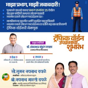 पुनावळे: एकीकडे मुख्यमार्गाचे युद्ध स्तरावर काम सुरू असून दुसरीकडे श्री शिवाजी महाराज भुयारी मार्ग पुनावळे चौक या ठिकाणी वाहतुकीच्या कोंडीची समस्या दिवसेंदिवस वाढत असल्यामुळे पुनावळेकर नागरीक त्रस्त झाले होते.रोजच्या रोज वाहतूक कोंडीच्या तक्रारी वाढतच होत्या त्या तक्रारींना आळा बसवण्यासाठी व पुनावळे करांना वाहतूक कोंडीतून मुक्तता मिळण्याकरता व मोकळा श्वास घेता यावा याकरिता भाजपचे शहर सचिव- नवनाथ ढवळे व सौ. सुमनताई नवनाथ ढवळे यांनी तक्रारींना प्रामुख्याने लक्ष देऊन पिंपरी चिंचवडचे आदरणीय आमदार शंकर जगताप यांच्या मार्गदर्शनाखाली पुनावळे येथील विस्कळीत वाहतूक समस्येचे निवारण करता यावे या हेतूने स्वयं खर्चातून वाहतूक वार्डन ची नेमणूक केली असून , वार्डन ची संख्या १० असेल, हे वार्डन दिवस व रात्र अशा शिफ्ट मधे वाहतूक नियंत्रणासाठी काम करणार असून ते सर्व जण वाकड वाहतूक अधिकारी यांच्या सुचने प्रमाणे काम करणार आहेत .