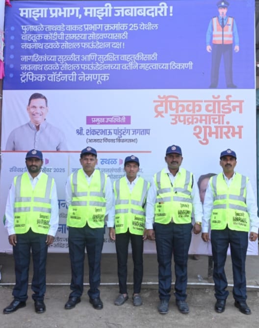 पुनावळे: एकीकडे मुख्यमार्गाचे युद्ध स्तरावर काम सुरू असून दुसरीकडे श्री शिवाजी महाराज भुयारी मार्ग पुनावळे चौक या ठिकाणी वाहतुकीच्या कोंडीची समस्या दिवसेंदिवस वाढत असल्यामुळे पुनावळेकर नागरीक त्रस्त झाले होते.रोजच्या रोज वाहतूक कोंडीच्या तक्रारी वाढतच होत्या त्या तक्रारींना आळा बसवण्यासाठी व पुनावळे करांना वाहतूक कोंडीतून मुक्तता मिळण्याकरता व मोकळा श्वास घेता यावा याकरिता भाजपचे शहर सचिव- नवनाथ ढवळे व सौ. सुमनताई नवनाथ ढवळे यांनी तक्रारींना प्रामुख्याने लक्ष देऊन पिंपरी चिंचवडचे आदरणीय आमदार शंकर जगताप यांच्या मार्गदर्शनाखाली पुनावळे येथील विस्कळीत वाहतूक समस्येचे निवारण करता यावे या हेतूने स्वयं खर्चातून वाहतूक वार्डन ची नेमणूक केली असून , वार्डन ची संख्या १० असेल, हे वार्डन दिवस व रात्र अशा शिफ्ट मधे वाहतूक नियंत्रणासाठी काम करणार असून ते सर्व जण वाकड वाहतूक अधिकारी यांच्या सुचने प्रमाणे काम करणार आहेत .
