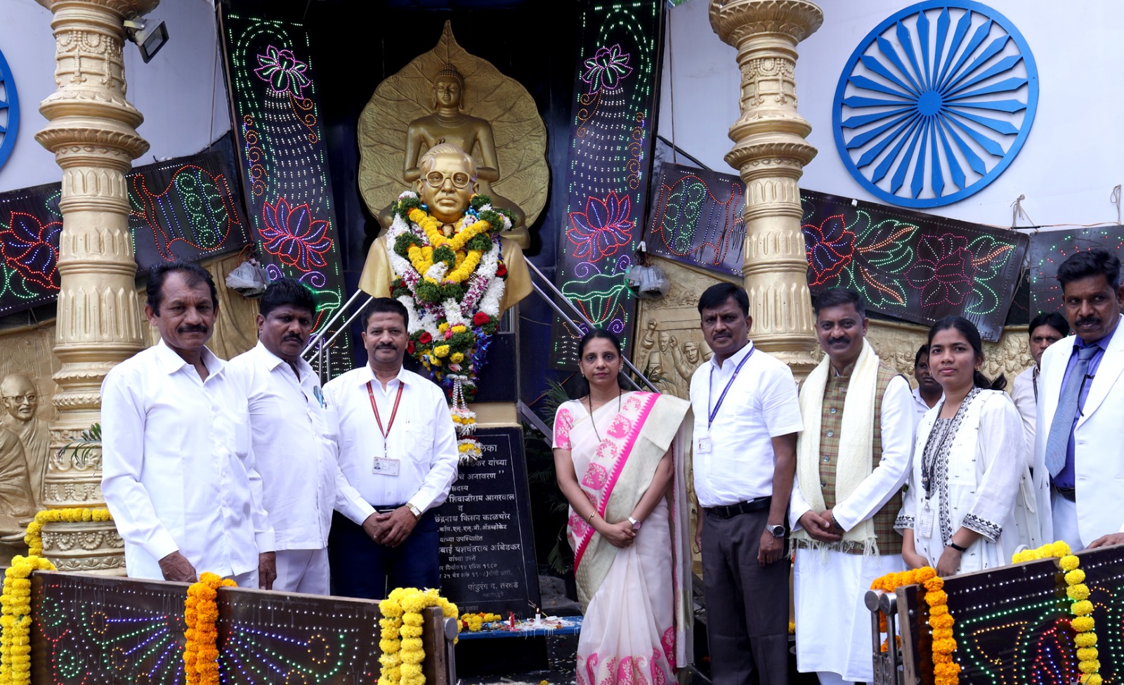 दरम्यान, सकाळी भीमसृष्टी पिंपरी येथील भारतरत्न डॉ. बाबासाहेब आंबेडकर यांच्या पुतळ्यावर एकता कर्मचारी संघटनेच्या वतीने हेलिकॉप्टरद्वारे पुष्पवृष्टी करण्यात आली.