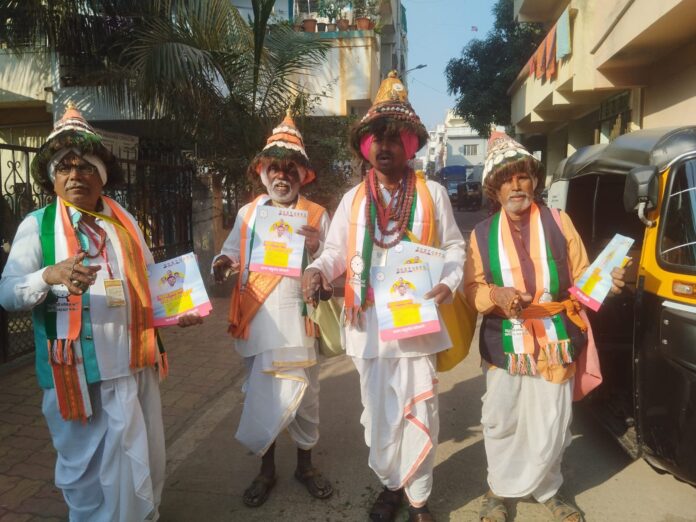 सागर कोकणे यांच्या प्रचारात वासुदेवाचा अनोखा अवतार ; जनतेचा उत्स्फूर्त प्रतिसाद