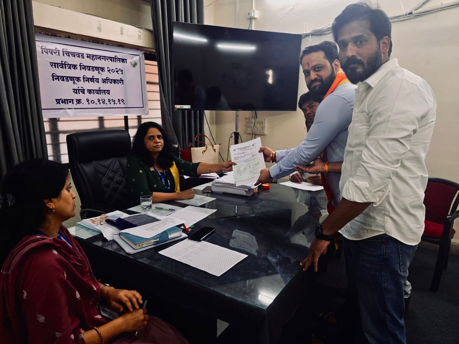 पिंपरी–चिंचवड महानगरपालिका निवडणुकीच्या पार्श्वभूमीवर प्रभाग क्रमांक १९ मधून शिवसेना उद्धव बाळासाहेब ठाकरे पक्षाच्या वतीने आकाश चतुर्वेदी यांनी आज अधिकृतपणे आपला उमेदवारी अर्ज दाखल केला. यावेळी पक्षाचे पदाधिकारी, कार्यकर्ते तसेच मोठ्या संख्येने समर्थक उपस्थित होते.
