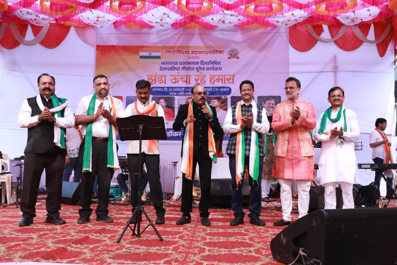 आकाशात दिमाखात फडकणारा तिरंगा, सभोवताली देशभक्तीच्या घोषणांनी आणि सुरांनी भारलेले वातावरण, आणि ‘ऐ वतन, वतन मेरे आज़ाद रहे तू’, ‘दिल दिया है, जान भी देंगे ये वतन तेरे लिये’, ‘आय लव्ह माय इंडिया’, ‘जय जय महाराष्ट्र माझा’, ‘वंदे मातरम्’ यांसारख्या देशप्रेम जागवणाऱ्या गीतांची सुरेल मेजवानी असा देशभक्ती, शौर्य आणि राष्ट्रीय ऐक्याचा प्रभावी आविष्कार पिंपरी चिंचवड महापालिकेच्या वतीने प्रजासत्ताक दिनानिमित्त निगडी येथील भक्ती शक्ती चौकात आयोजित ‘झेंडा उंचा रहे हमारा’ या विशेष कार्यक्रमात अनुभवायला मिळाला.