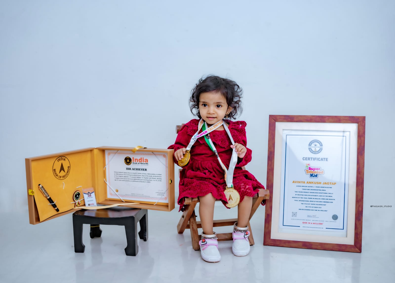 एआय, तंत्रज्ञान आणि वेगवान बदलांच्या या जमान्यात नैसर्गिक बुद्धिमत्ता, विलक्षण स्मरणशक्ती आणि भाषिक कौशल्यांचे आश्चर्यकारक दर्शन घडवणारी एक चिमुकली सध्या सर्वत्र चर्चेचा विषय ठरत आहे. पुणे (महाराष्ट्र) येथील अवघ्या एक वर्ष सहा महिन्यांची अविन्या अंकुश जगताप हिने आपल्या असामान्य क्षमतेच्या जोरावर International Book of Records तसेच India Book of Records मध्ये नोंद मिळवत ‘Super Talented Kid’ हा मान पटकावला आहे. तिला ‘One in a Million’ म्हणून गौरवण्यात आले आहे.