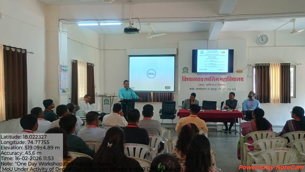 कळंब – कळंब येथील इंदापूर तालुका ग्रामविकास प्रतिष्ठानचे विश्वासराव रणसिंग महाविद्यालयामध्ये 16 फेब्रुवारी 2026 रोजी अर्थशास्त्र विभागाच्या वतीने आर्थिक साक्षरता व अर्थसंकल्प 2026 या विषयावर एक दिवसीय कार्यशाळा आयोजित करण्यात आली होती. कार्यशाळेच्या यशस्वीतेमध्ये महाविद्यालयाचे प्राचार्य डॉ. अशोक काळंगे यांचे मोलाचे मार्गदर्शन लाभले. या कार्यशाळेनिमित्त महाविद्यालयामध्ये अर्थशास्त्रीय संकल्पनेवर आधारित अर्थशास्त्रीय रांगोळी स्पर्धेचे देखील आयोजन करण्यात आले होते. यामध्ये अर्थशास्त्र विभागाच्या एकूण 22 विद्यार्थिनींनी सहभाग घेतला होता.