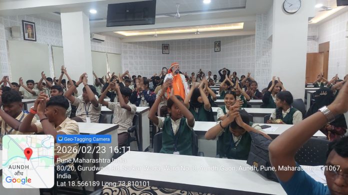 औंध-पुणे दिनांक २३/०२ /२०२६ रयत शिक्षण संस्थेच्या, डॉ. बाबासाहेब आंबेडकर महाविद्यालयात संत गाडगेबाबा यांच्या १५० व्या जयंतीनिमित्त एकपात्री प्रयोगाचे आयोजन करण्यात आले होते.हा कार्यक्रम सांस्कृतिक विभाग, इतिहास विभाग आणि रॅशनल थिंकिंग सेल यांच्या संयुक्त विद्यमाने घेण्यात आला. या एकपात्री प्रयोगाचे सादरकर्ते होते मा.नटश्रेष्ठ कुमार आहेर. कार्यक्रमाचे अध्यक्षस्थानी महाविद्यालयाचे प्राचार्य डॉ. प्रभंजन चव्हाण हे होते.
