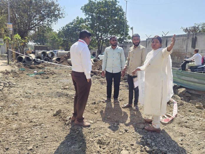 भोसरीत रस्ता काँक्रिटीकरणाचे काम ठप्प; विद्यार्थ्यांच्या सुरक्षेचा प्रश्न ऐरणीवर, प्रियांका बारसे यांची प्रशासनाला तातडीची सूचना