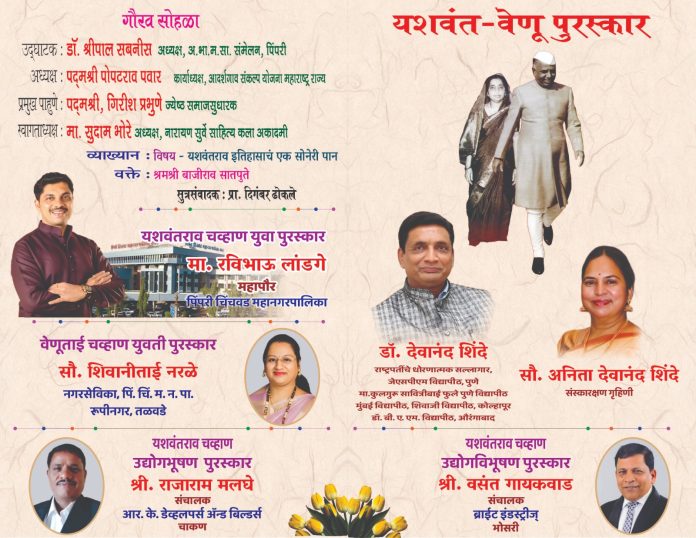 नारायण सुर्वे साहित्य कला अकादमीचे अध्यक्ष सुदाम भोरे सोहळ्याचे स्वागताध्यक्ष आहेत. यापूर्वी, भाऊसाहेब भोईर, संजोग वाघेरे, राजाभाऊ गोलांडे, सुरेश घुले, अनिल भोसले, शांताराम भालेकर, उमा खापरे, सुलभा उबाळे या राजकीय क्षेत्रातील मान्यवरांना यशवंतराव चव्हाण युवा पुरस्कार प्रदान करून सन्मानित करण्यात आले आहे, अशी माहिती प्रतिष्ठानचे पिंपरी – चिंचवड विभाग अध्यक्ष पुरुषोत्तम सदाफुले यांनी दिली असून या सोहळ्यात राष्ट्रपतींचे धोरणात्मक सल्लागार डाॅ. देवानंद शिंदे आणि त्यांच्या सुविद्य पत्नी अनिता शिंदे या दांपत्याला यशवंत – वेणू पुरस्कार प्रदान करून गौरविण्यात येणार आहे. त्याचबरोबर नगरसेविका शिवानी नरळे यांना (वेणूताई चव्हाण युवती पुरस्कार), आर. के. डेव्हलपर्स ॲण्ड बिल्डर्सचे संचालक राजाराम मलघे यांना (यशवंतराव चव्हाण उद्योगभूषण पुरस्कार) आणि ब्राईट इंडस्ट्रीजचे संचालक वसंत गायकवाड यांना (यशवंतराव चव्हाण उद्योगविभूषण पुरस्कार) प्रदान करून सन्मानित करण्यात येणार आहे. याप्रसंगी श्रमश्री बाजीराव सातपुते ‘यशवंतराव इतिहासाचं एक सोनेरी पान’ या विषयावर व्याख्यान देणार आहेत. नागरिकांनी या सोहळ्याचा आवर्जून लाभ घ्यावा, असे आवाहन प्रतिष्ठानच्या वतीने