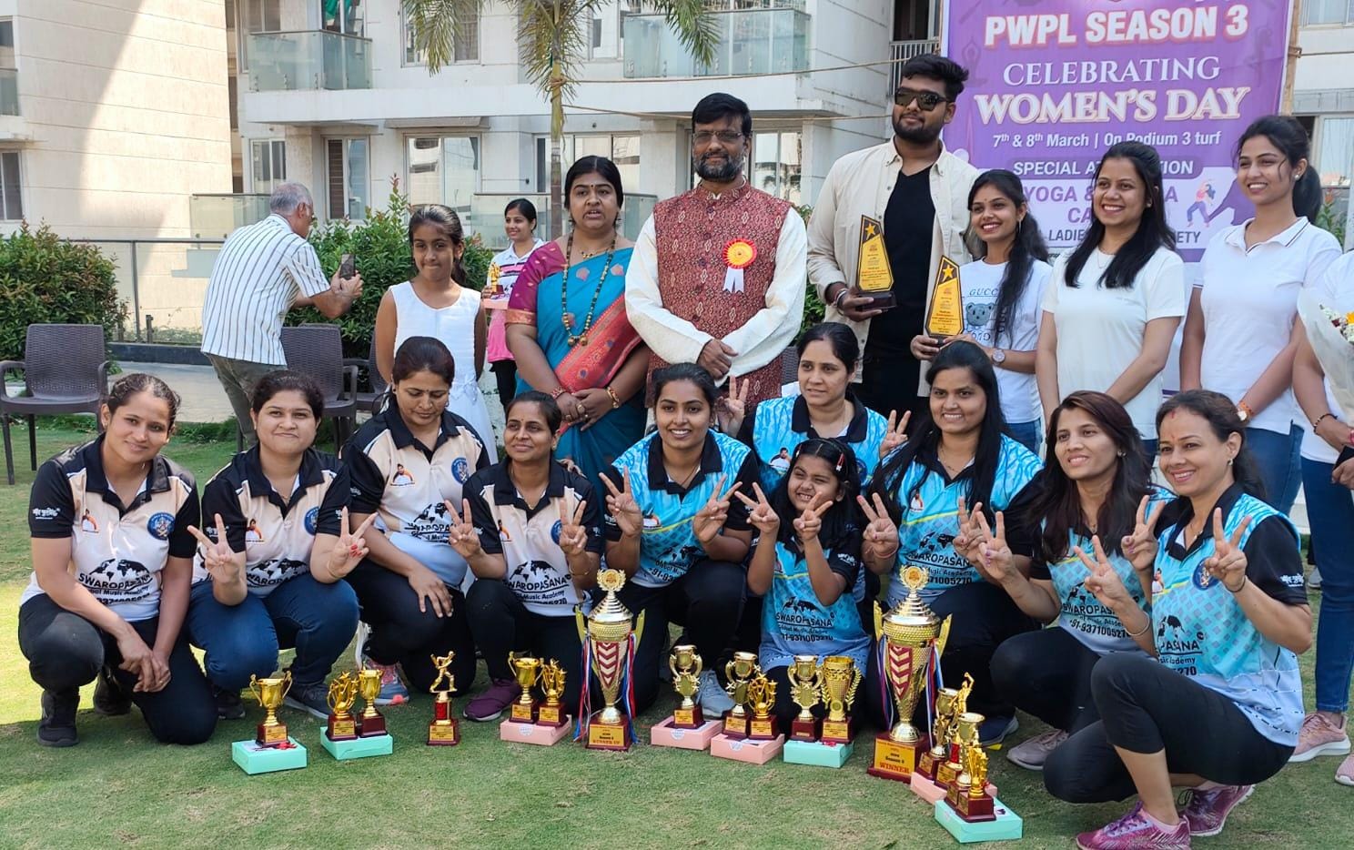 जागतिक महिलादिनाचे औचित्य साधून स्वरोपासना ग्लोबल म्युझिक अकॅडमीच्या पुनावळे आणि वाकड शाखांच्या वतीने दोन दिवसीय पुनेविला प्रीमियर लिग ३ या महिला क्रिकेट स्पर्धेचे आयोजन पुनावळे येथे करण्यात आले होते. रविवार, दिनांक ०८ मार्च २०२६ रोजी राॅयल शेरनीज या विजेत्या संघाला करंडक प्रदान करून गौरविण्यात आले. स्पर्धेच्या उद्घाटन प्रसंगी नगरसेविका रेश्मा भुजबळ यांनी, ‘महिला या जशा संगीतात नैपुण्य दाखवतात; तशा मैदानावर क्रिकेटही खेळू शकतात!’ असे गौरवोद्गार काढले. तर बक्षीस वितरण प्रसंगी स्वरोपासना ग्लोबल म्युझिक अकॅडमीचे संचालक अभय कुलकर्णी, संचालिका अर्पिता कुलकर्णी आणि गायक अथर्व कुलकर्णी यांच्या हस्ते विजेत्या संघासह सर्वांना सन्मानित करण्यात आले. यावेळी अभय कुलकर्णी यांनी, ‘फक्त चूल आणि मूल ही ओळख पुसून टाकीत एकविसाव्या शतकातील महिलांनी आपण पुरुषांपेक्षाही जास्त क्षेत्रांत अग्रेसर आहोत हे सिद्ध केले आहे!’ असे मत व्यक्त केले; तर अर्पिता कुलकर्णी यांनी स्त्री शक्तिपीठांची माहिती देत त्यापासून सातत्याने महिलांनी प्रेरणा घ्यावी, असे आवाहन केले.