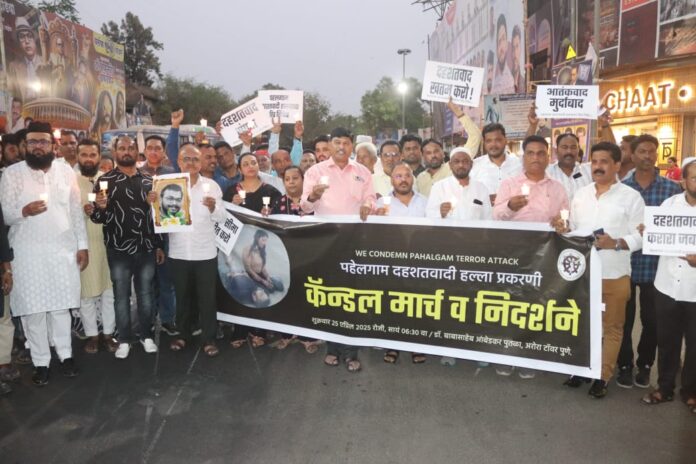 पुणे कॅम्प येथील डॉ. बाबासाहेब आंबेडकर यांच्या पुतळ्याला पुष्पहार अर्पण करून शेकडोंच्या उपस्थितीमध्ये पहेलगाम दहशतवादी हल्ल्याच्या विरोधात कॅन्डल मार्च व निदर्शनाचे आयोजन नॅशनल कॉन्फरन्स फॉर मायनॉरिटीच्या वतीने करण्यात आले होते. यावेळी मान्यवर नेत्यांच्या उपस्थितीमध्ये निषेध सभा देखील घेण्यात आली व या सभेत या हल्ल्याचा तीव्र निषेध नोंदवत हल्लेखोरांवर कठोर शिक्षा करावी तसेच दहशतवादाला पाठिंबा देणाऱ्या पाकिस्तानवर देखील कठोर निर्बंध लावावे यासाठी सरकारच्या भूमिकेसोबत सर्व भारतीय आहेत असा विश्वास सर्वांच्या वतीने डॉ. सिध्दार्थ धेंडे व रशिद शेख यांनी यांचेद्वारे व्यक्त करण्यात आला. तसेच या अनुषंगाने केंद्र सरकारने सुरक्षा संदर्भामध्ये चूक झाल्याचे मान्य केले असल्याने यातील दोषींवर देखिल कारवाई व्हावी अशी मागणी करण्यात आली.