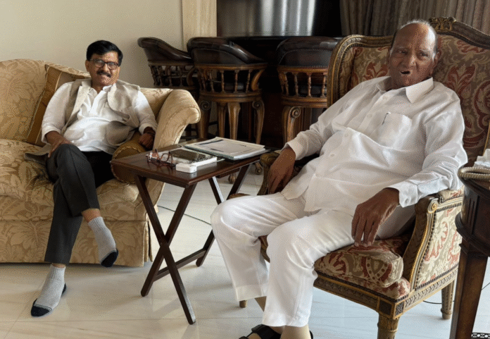 शरद पवार म्हणाले, “राज्यसभेचे खासदार तसेच शिवसेनेचे नेते संजय राऊत यांनी आज माझ्या निवासस्थानी सदिच्छा भेट दिली. या भेटीच्या वेळी त्यांनी आपल्या लेखणीतून साकारलेल्या ‘नरकातील स्वर्ग’ या पुस्तकाच्या प्रकाशन समारंभाचे औपचारिक निमंत्रण दिले.या भेटीदरम्यान रोहन तावरे यांनी लिहिलेल्या वन्यजीवनावर आधारित पुस्तकावर सविस्तर चर्चा झाली. त्याचप्रमाणे, राज्य व देशातील विविध मुद्द्यांवरही विचारमंथन झाले. भेटीनंतर मी त्यांना त्यांच्या पुढील कार्यासाठी मन:पूर्वक शुभेच्छा दिल्या.”