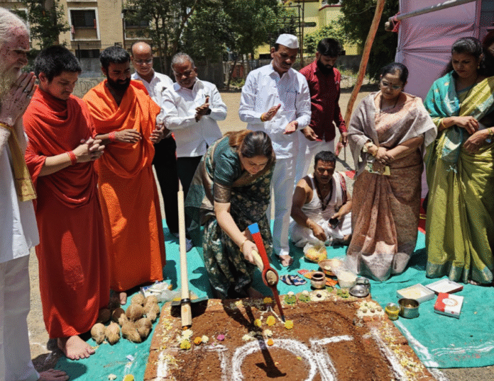 मा. आमदार अश्विनी जगताप व पतंजली हरिद्वारचे स्वामी आदित्य देवजी यांच्या हस्ते प्रभाग क्रमांक -18, चिंचवडगाव, केशवनगर,गोयल गरिमा येथील अद्यावत योग प्रशिक्षण केंद्र या इमारतीचे भुमिपुजन झाले. या प्रसंगी नगरसेवक सुरेश शिवाजी भोईर , अश्विनीताई चिंचवडे , माधुरीताई कुलकर्णी, डॉ. अजित जगताप, हिरामण भुजबळ, लक्ष्मण जोशी, गतिराम भोईर, पंजाबराव मोंढे, दीपक गावडे सुरेश आगवणे, सुभाष मालुसरे, नुतन चव्हाण, दिपाली कलापुरे, चैताली भोईर, व इतर योग साधक व जेष्ठ नागरिक मोठ्या संख्येने उपस्थित होते.