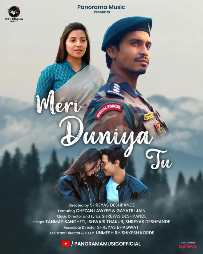 देशभक्ती आणि प्रेम यांच्या अद्वितीय संगमातून साकार झालेलं “मेरी दुनिया तू” हे गाणं आज पॅनोरमा म्युझिकच्या यूट्यूब चॅनेलवर प्रदर्शित झालं असून, संगीतप्रेमींमध्ये आणि विविध कलाक्षेत्रात याचे भरभरून स्वागत होत आहे. एका नवविवाहित भारतीय सैन्य अधिकाऱ्याच्या जीवनावर आधारित असलेलं हे गाणं, त्याच्या आणि त्याच्या पत्नीच्या प्रेमकथेच्या पार्श्वभूमीवर, देशसेवेच्या कठोर वास्तवाचं भेदक चित्रण करतं.