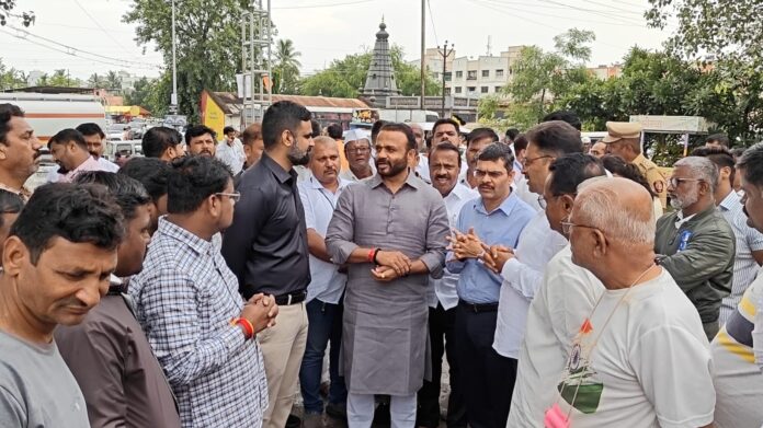 जेजुरी येथे पालखीतळ पाहणीप्रसंगी आमदार विजय शिवतारे, राहुल कुल, जेजुरी नगरपरिषदेचे मुख्याधिकारी चारुदत्त इंगुले आदी उपस्थित होते.