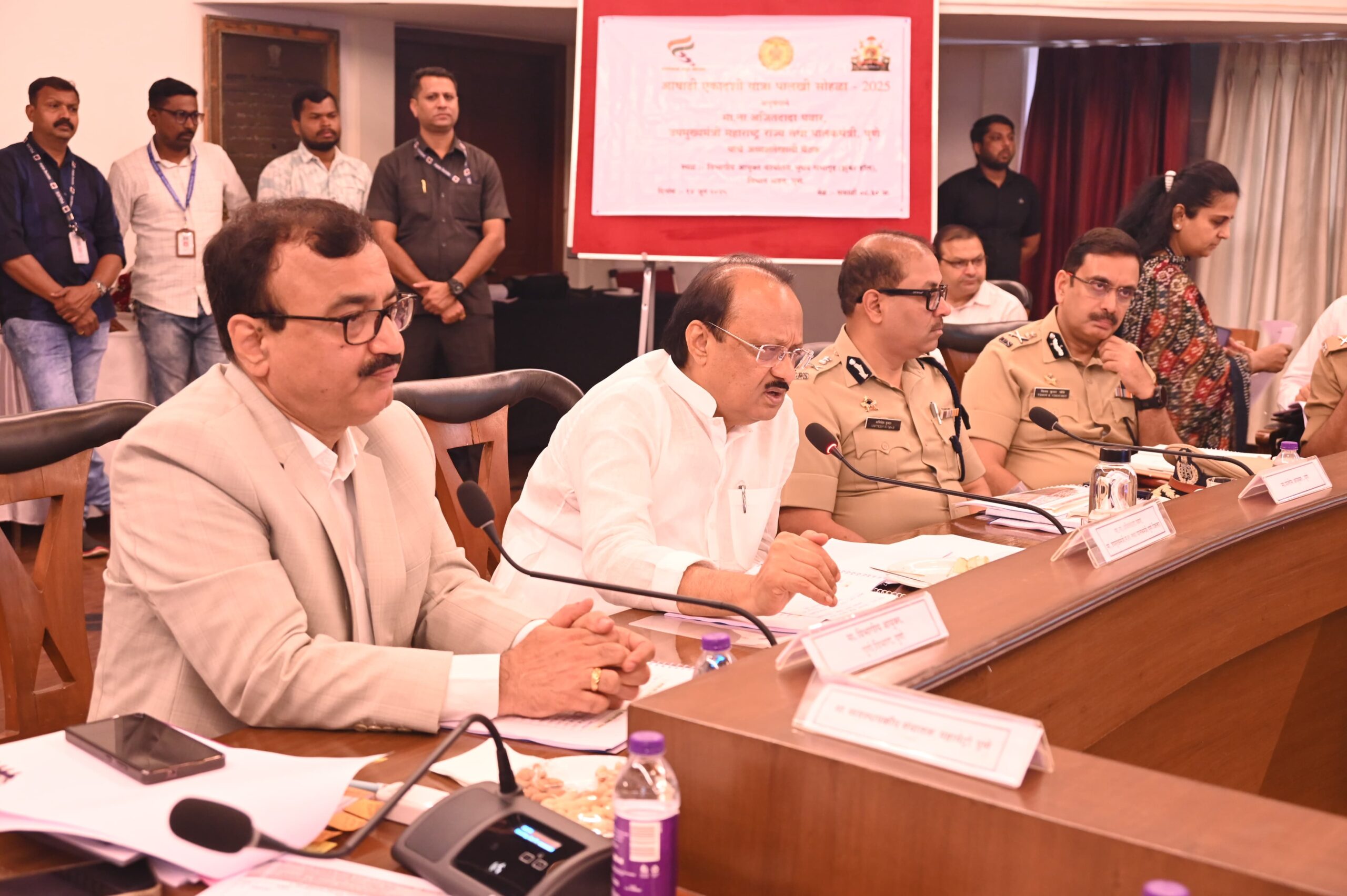 पोलीस आयुक्त अमितेशकुमार, विनय कुमार चौबे यांनी सुरक्षा आणि वाहतूक नियोजनाबाबत माहिती दिली. इतर उपस्थित जिल्हाधिकारी आणि वरिष्ठ अधिकाऱ्यांनीही पालखी सोहळ्यासाठी आवश्यक सूचना तसेच केलेल्या तयारीची माहिती दिली.