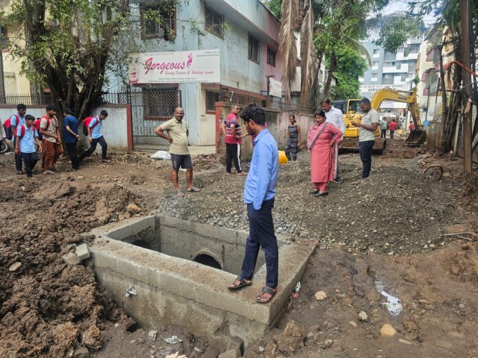 ड्रेनेज लाईन कामाची शालेय विद्यार्थ्यांना अडचण येऊ नये, याकरिता माजी नगरसेविका प्रियंका बारसे यांच्या संबंधितांना सूचना