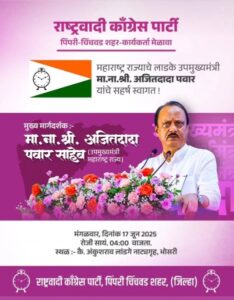 पिंपरी चिंचवड शहरातील राष्ट्रवादी पक्षाचा भव्य कार्यकर्ता मेळावा मंगळवार (दि. १७) जून रोजी सायंकाळी चार वाजता भोसरी येथील कै. अंकुशराव लांडगे सभागृहात महाराष्ट्र राज्याचे उपमुख्यमंत्री अजित पवार यांच्या उपस्थितीत संपन्न होत आहे, अशी माहिती राष्ट्रवादी पक्षाचे पिंपरी चिंचवड शहराचे शहराध्यक्ष योगेश बहल यांनी दिली आहे. या कार्यकर्त्यां मेळाव्यात शहरातील अनेक मोठ्या नेत्यांचे जाहीर प्रवेश होणार असल्याचे सांगण्यात येत आहे. यामध्ये अजित गव्हाणे, शरद पवार यांच्या राष्ट्रवादीला सोडचिठ्ठी देत अजित पवार यांच्या राष्ट्रवादी पक्षात प्रवेश करणार आहेत. तसेच अजित गव्हाणे यांच्यासोबत वीस ते पंचवीस माजी नगरसेवक राष्ट्रवादीत पुन्हा परतणार असल्याचे सांगण्यात येत आहे. त्यामुळे भोसरी येथे होणाऱ्या या कार्यकर्ता मेळाव्याला महत्त्व प्राप्त झाले आहे.