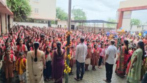 बालवाडी ,प्राथमिक,माध्यमिक विभागाचे विद्यार्थी मोठ्या संख्येने आज एवढ्या पावसाळी वातावरणात उपस्थित होते.