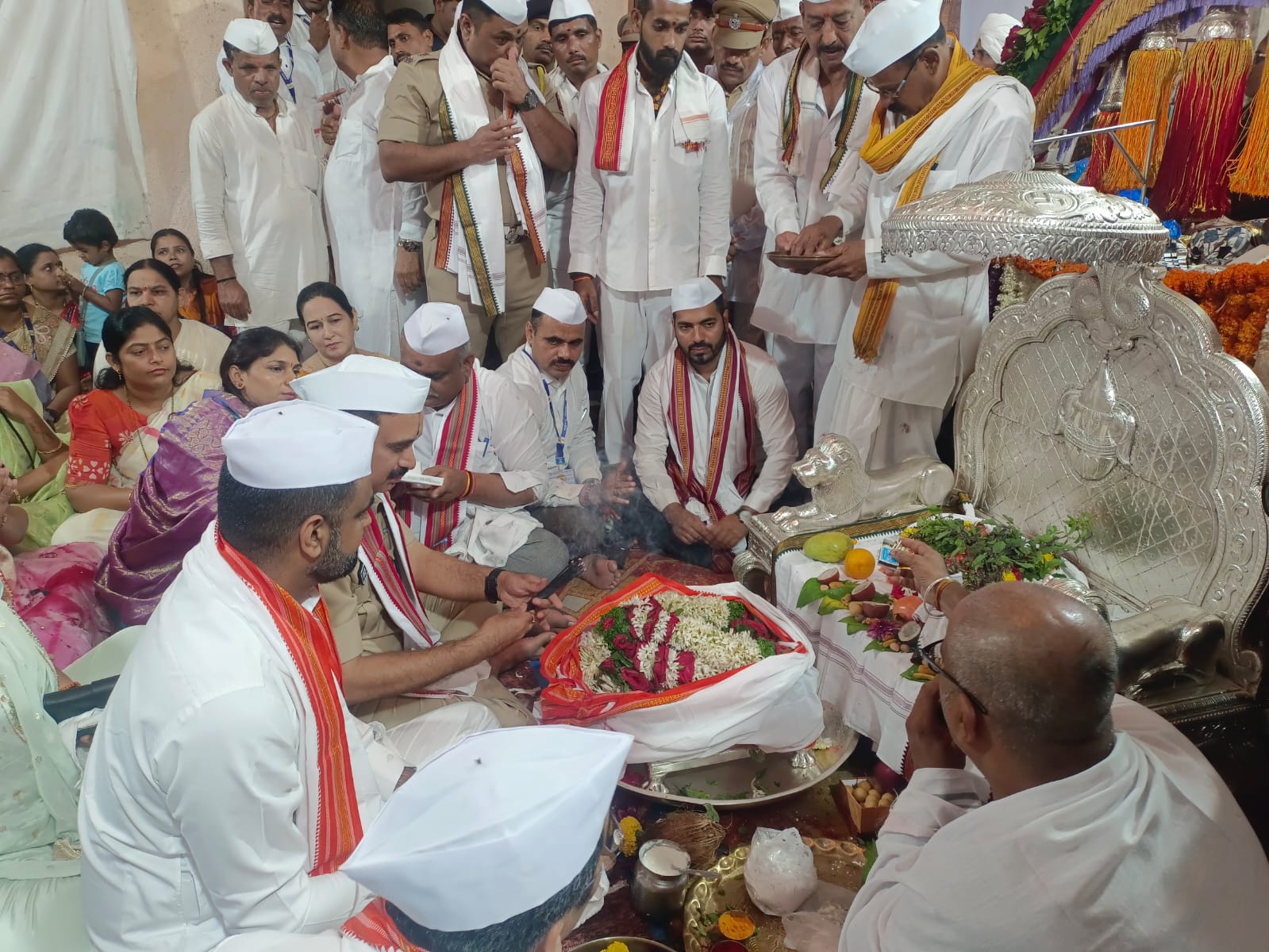 दर्शन व पूजेनंतर मान्यवरांचा मंदिर संस्थानच्यावतीने सत्कार करण्यात आला. महापुजेनंतर पालखीचे इनामदार वाड्यातून प्रस्थान झाले.