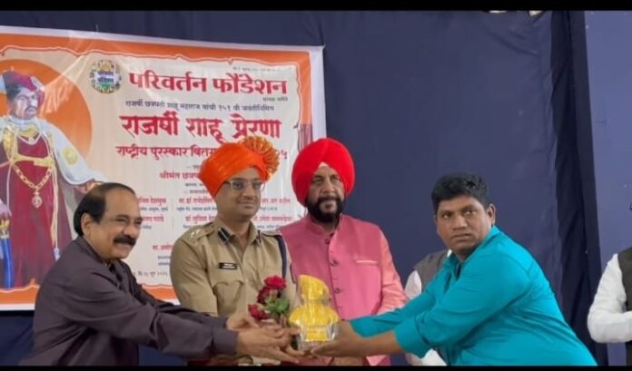 परिवर्तन फाउंडेशनच्या वतीने दसरा चौक येथील शाहू स्मारक भवन मध्ये राजर्षी शाहू महाराज यांच्या 151 व्या जयंतीचे अवचित साधून विविध क्षेत्रात उल्लेखनीय कार्य करणाऱ्या मान्यवरांना राजर्षी शाहु प्रेरणा राष्ट्रीय पुरस्कार देण्यात आला.