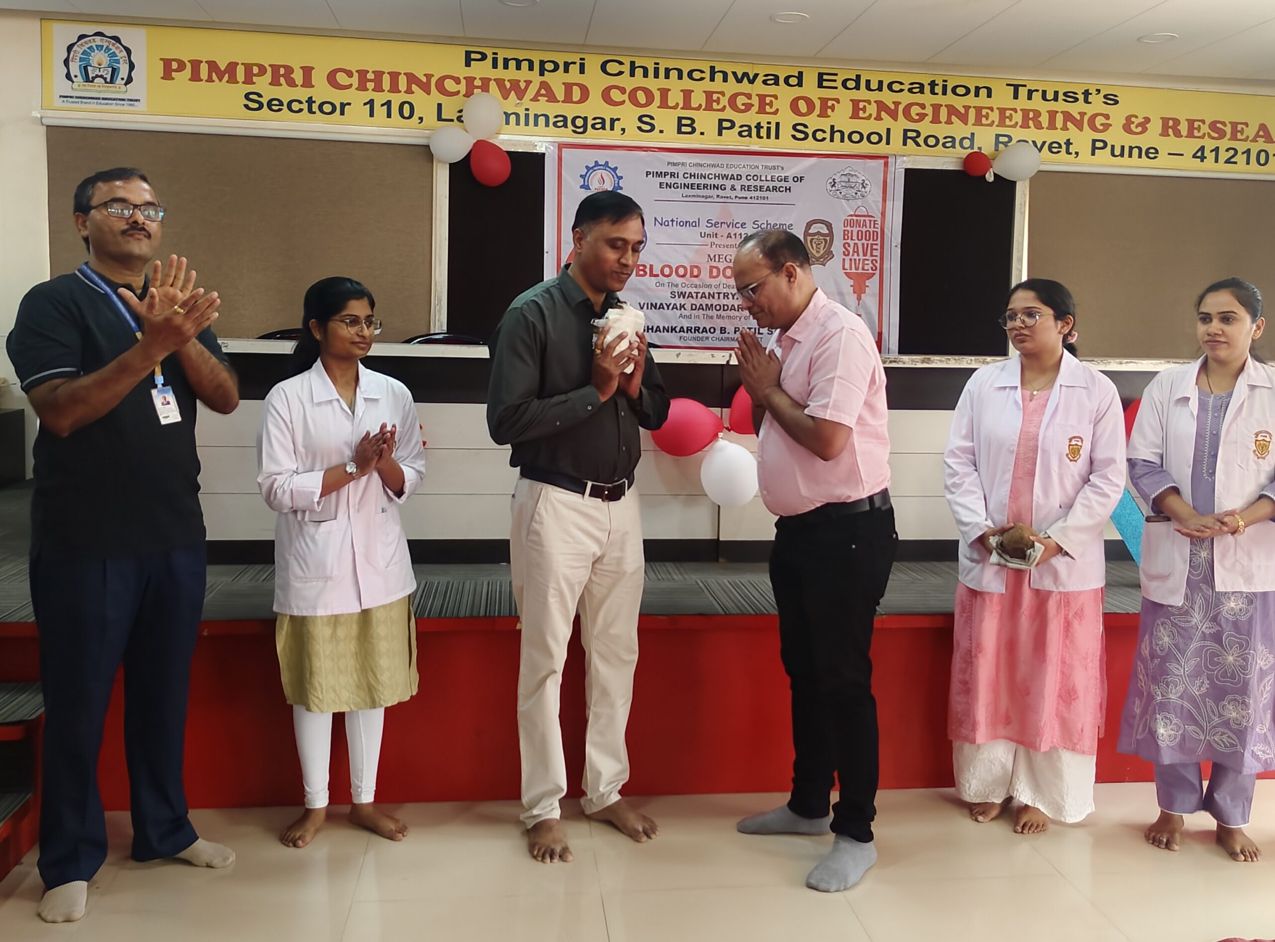 यावेळी आयोजित केलेल्या रक्तदान शिबिरात १६२ रक्तदात्यांनी रक्तदान केले. पीसीसीओइआरचे प्राचार्य डॉ. हरीश तिवारी यांच्या हस्ते दीपप्रज्वलन करण्यात आले. यावेळी राष्ट्रीय सेवा योजना प्रकल्प अधिकारी डॉ. महेंद्र साळुंके, ससून रुग्णालयातील अधिकारी किरण ठाकरे, डॉ. श्रद्धा वर्मा हे उपस्थित होते.