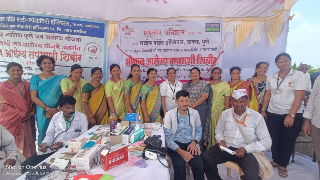 संस्कार प्रतिष्ठान महाराष्ट्र राज्य पिंपरी चिंचवड शहर आणि लाईफ पॉइंट हॉस्पिटल वाकड यांच्या संयुक्त विद्यमाने श्री संत तुकाराम महाराज पालखीतील वारकऱ्यांसाठी मोफत आरोग्य तपासणी शिबिराचे आयोजन संस्कार प्रतिष्ठानचे संस्थापक अध्यक्ष डॉ मोहन गायकवाड यांच्या मार्गदर्शनाखाली शनिवार दिनांक २८ जून २०२५ रोजी सकाळी सहा ते दुपारी तीन वाजेपर्यंत इंदापूर तालुक्यातील लासुर्णे या गावी करण्यात आले होते.