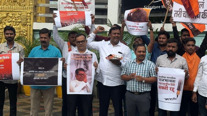 महाराष्ट्र शासनाने प्राथमिक शालेय शिक्षणात तिसरी भाषा म्हणून हिंदी सक्तीचा निर्णय अखेर रद्द केल्याचे जाहीर केले आहे. या निर्णयामुळे महाराष्ट्रभरातून जनतेतून समाधान व्यक्त होत असून, महाराष्ट्र नवनिर्माण सेनेच्या वतीने या ऐतिहासिक निर्णयाचे स्वागत करत पिंपरीतील विश्वरत्न डॉ. बाबासाहेब आंबेडकर स्मारक येथे भव्य आनंदोत्सव साजरा करण्यात आला.