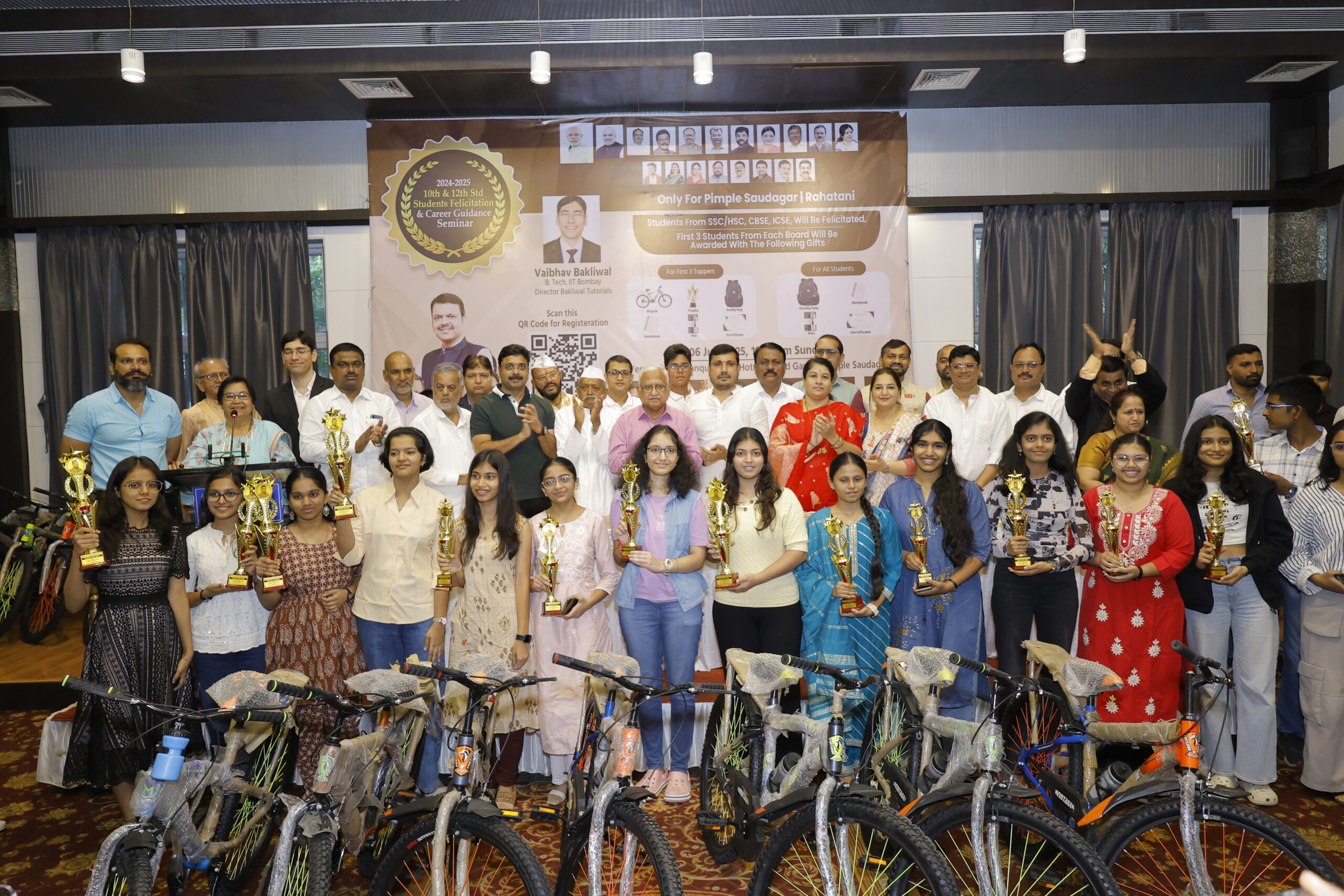 या समारंभात २०२४-२०२५ या शैक्षणिक वर्षात एसएससी, एचएससी, सीबीएससी आणि आयसीएसई बोर्डांमध्ये उत्कृष्ट कामगिरी केलेल्या ५५० विद्यार्थ्यांचा गौरव करण्यात आला. प्रत्येक बोर्डामधून पहिले तीन क्रमांक पटकावणाऱ्या गुणवंत विद्यार्थ्यांना विशेष भेटवस्तू देऊन सन्मानित करण्यात आले. यामध्ये सायकल, ट्रॉफी, गुड्डी बॅग, नोटबुक, पेन आणि प्रमाणपत्र यांचा समावेश होता. याव्यतिरिक्त, कार्यक्रमात उपस्थित असलेल्या सर्व विद्यार्थ्यांनाही गुड्डी बॅग, नोटबुक, पेन आणि प्रमाणपत्र देऊन प्रोत्साहन देण्यात आले, ज्यामुळे विद्यार्थ्यांचा उत्साह द्विगुणित झाला.