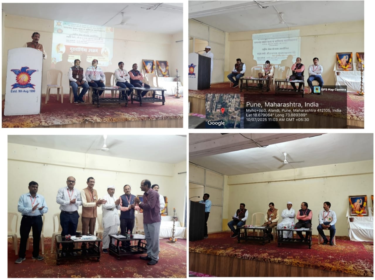 या प्रसंगी महाविद्यालयातील सर्व शिक्षक व शिक्षकेत्तर कर्मचारी यांचा गुलाब पुष्प देऊन सत्कार करण्यात आला तसेच महाविद्यालयातील सौ. सुषमा जानवेकर, कु.मयूर नागणे, कु.रोशण चव्हाण, कु. वैष्णवी तापकीर, कु.आशिष काटकर व कु.श्रेया ढसाळ यांनी आपले मनोगत व्यक्त केले. सदर कार्यक्रमाचे प्रमुख व्याख्याते श्री.ह.भ.प. प्रा. सुभाष महाराज गेठे यांनी ‘गुरुपौर्णिमा महिमा व भारतीय संस्कृती’ या विषयावर भाष्य करतांना भारतीय संस्कृती ही गुरु शिष्यांच्या परंपरेने नटलेली असून सक्षम नागरिक बनविण्यासाठी शिक्षक हा घटक कसा महत्वपूर्ण आहे तसेच अंधकारमय जीवनाला प्रकाशमान करण्यासाठी गुरुचा आदर्श व ज्ञान कसे कारणीभूत ठरते या संदर्भात मत व्यक्त केले. व्यासचा अर्थ बुद्धी, ज्ञान असा होत असून माणसाला तारणे व जगविणे म्हणजे ज्ञान होय. ज्ञानाशिवाय कोणतीही गोष्ट पवित्र नसून ज्याच्याकडून चांगला गुण घेता येईल तो गुरुस्थानी असून प्रत्येक व्यक्तीने स्वतःशी प्रामाणिक राहून ज्ञान आणि बुद्धीवर निरंतर प्रेम केले पाहिजे तसेच मानवी शरीरातील डोळे आणि कान एकत्र आल्याशिवाय खऱ्या ज्ञानाची प्राप्ती होत नाही या संदर्भात मत व्यक्त करून प्राचीन वेद, पुराण, रामायण व महाभारतातील गुरु शिष्यांच्या कार्यकर्तृत्वाचा आढावा घेऊन विविध उदाहरणासह मार्गदर्शन केले.