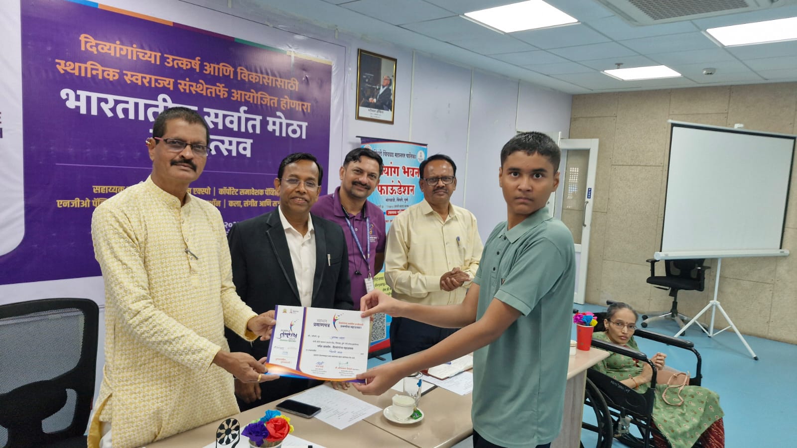 दिव्यांग भवन फाउंडेशनच्या वतीने आयोजित पर्पल जल्लोष कार्यक्रमाचे प्रमाणपत्र वितरण शुक्रवारी मराठी पत्रकार संघाचे शहराध्यक्ष सातुर्डेकर यांच्या हस्ते करण्यात आले. त्यावेळी ते बोलत होते. कार्यक्रमास दिव्यांग फाउंडेशनचे व्यवस्थापकीय संचालक ओमप्रकाश देशमुख, मुख्य कार्यकारी अधिकारी परेश गांधी,कार्यक्रम समन्वयक नंदकुमार फुले ब्रह्मदत्त विद्यालयाचे मुख्याध्यापक रावसाहेब कांबळे स्टॉलधारक प्रतिनिधी ममता वर्मा दिव्यांग भवनचे सल्लागार दत्तात्रय भोसले समुपदेशक दर्शना फडतरे, राजेंद्र वाघचौरे, संगीता जोशी आदी उपस्थित होते.