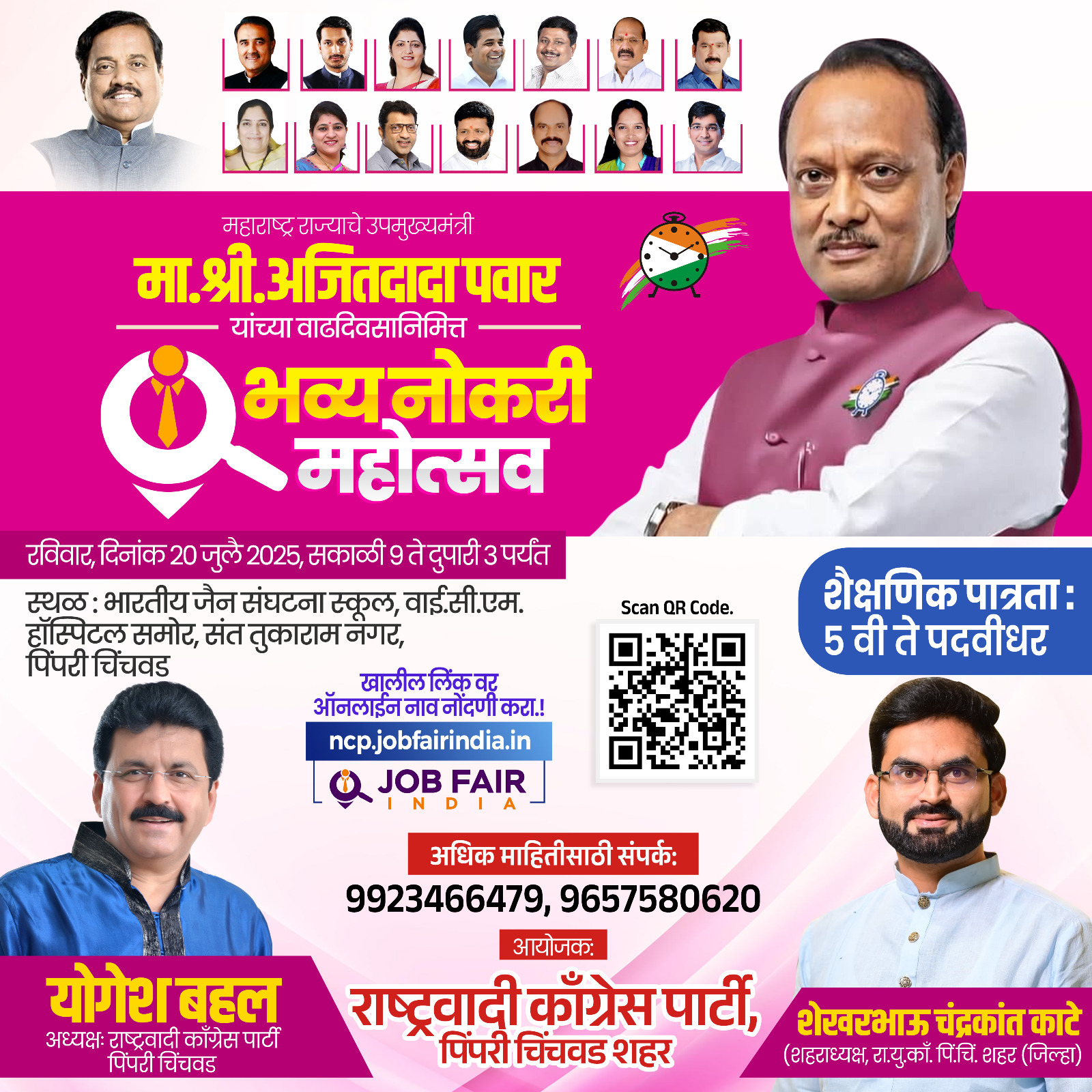 JOB FAIR : अजित पवार यांच्या वाढदिवसानिमित्त वतीने भव्य नोकरी महोत्सव !