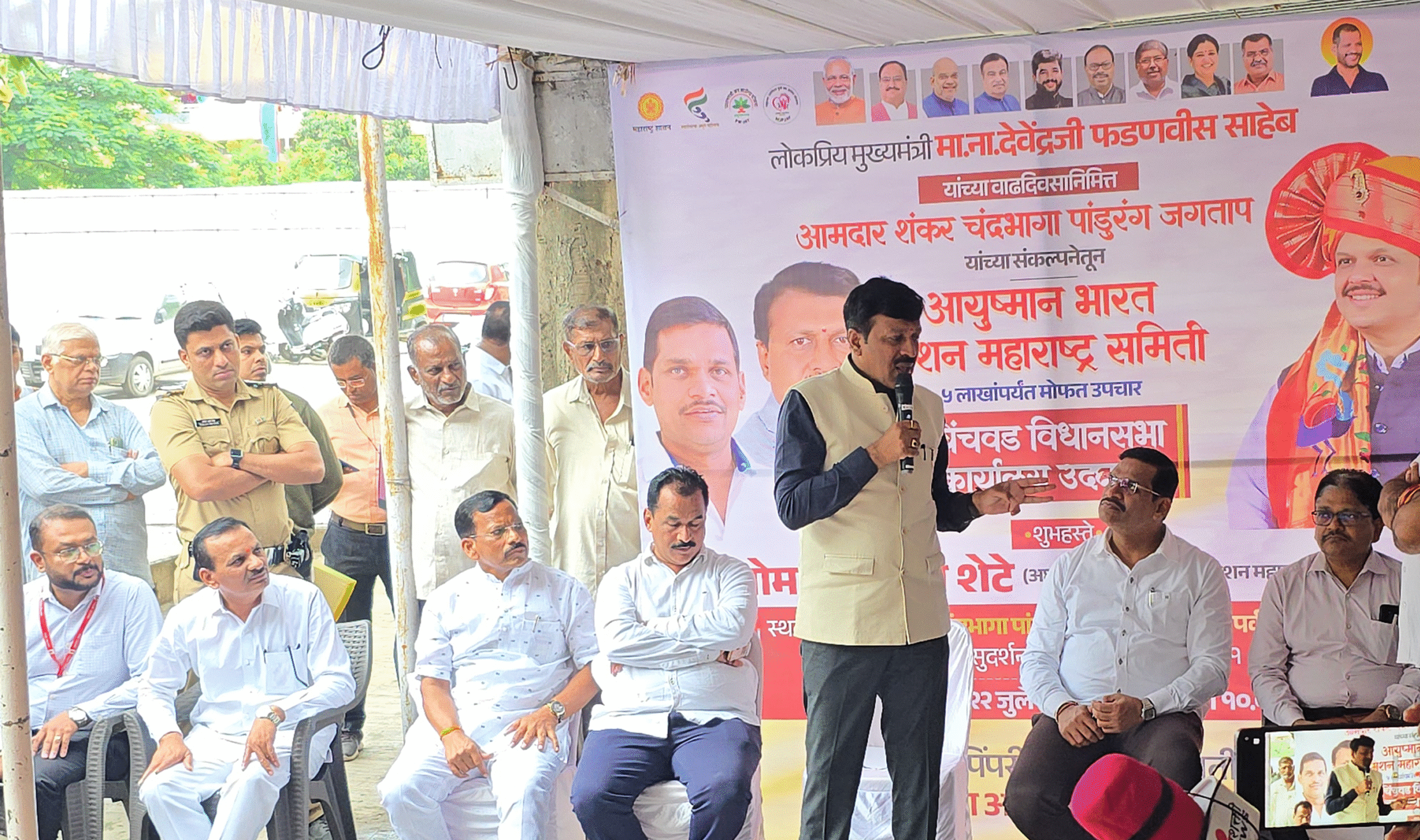 राज्याचे लोकप्रिय मुख्यमंत्री देवेंद्र फडणवीस यांच्या वाढदिवसानिमित्त ‘आयुष्मान भारत प्रधानमंत्री जन आरोग्य योजना’च्या महाराष्ट्रातील पहिल्या अधिकृत कार्यालयाचे उद्घाटन पिंपरी-चिंचवड शहरात उत्साहात आणि जनतेच्या साक्षीने पार पडले. हे कार्यालय आमदार शंकर चंद्रभागा पांडुरंग जगताप यांच्या जनसंपर्क कार्यालयात सुरू करण्यात आले असून, राज्यात या प्रकारचे हे पहिलेच कार्यालय आहे.