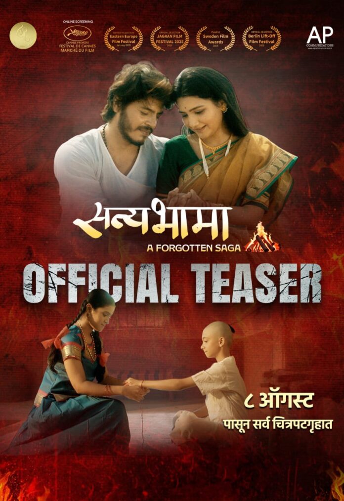 ‘सत्यभामा – अ फरगॅाटन सागा’ या मराठी चित्रपटात रसिकांना आपल्या समाजाच्या भूतकाळातील विचारसरणीचे दर्शन घडविणार आहे. एकोणिसाव्या शतकातील सती प्रथेवर आधारलेला ‘सत्यभामा’ हा चित्रपट त्या काळातील वास्तव परिस्थितीवर प्रकाश टाकणारा आहे. मुलांवर आई-वडिलांचं असो, वा आई-वडिलांवर मुलांचं, भावावर बहिणचं असो, वा बहिणीवर भावाचं, प्रेयेसीवर प्रियकराचं असो, वा प्रियकरावर प्रेयेसीचं… अपेक्षा न ठेवता केलं जातं तेच खरं प्रेम… अशाच प्रेमाची अनुभूती देणारा सती प्रथेवर आधारित एकोणिसाव्या शतकातील पार्श्वभूमी असलेला ‘सत्यभामा – अ फरगॅाटन सागा’ हा आशयप्रधान चित्रपट आपल्या जवळच्या चित्रपटगृहात ८ ऑगस्टला झळकणार आहे. या चित्रपटाचा उत्कंठावर्धक टिझर प्रेक्षकांच्या भेटीला आला आहे.