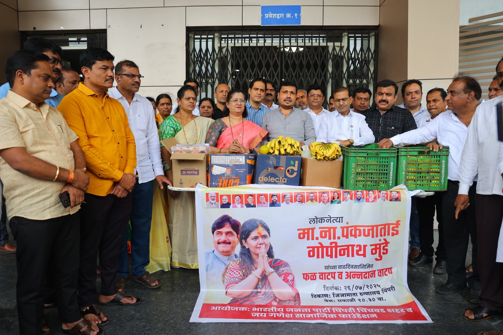 राज्याच्या पर्यावरण व वातावरणीय बदल, पशुसंवर्धन कॅबिनेट मंत्री पंकजाताई मुंडे यांच्या वाढदिवसानिमित्त पिंपरी येथील जिजामाता रुग्णालयात रुग्णांना फळवाटप करण्यात आले. भारतीय जनता पक्षाच्या ज्येष्ठ नेत्य पंकजाताई मुंडे यांच्या वाढदिवसाचे औचित्य साधत हा सामाजिक उपक्रम संपन्न झाला. भाजप पिंपरी-चिंचवड शहर यांच्या वतीने आयोजित हा कार्यक्रम समाजसेवेचा संदेश देणारा ठरला.