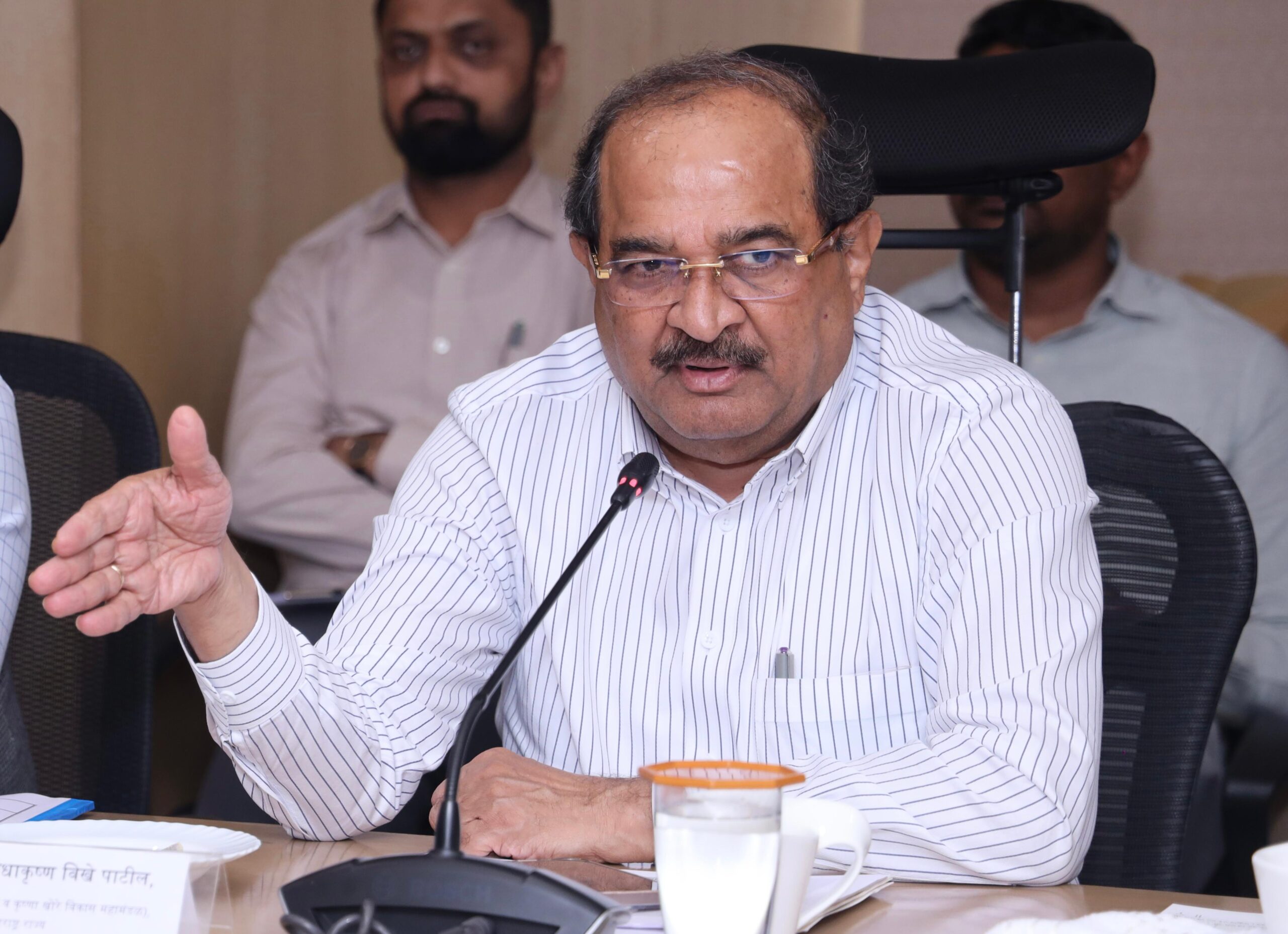 मंत्री श्री. विखे पाटील पुढे म्हणाले, पुणे महानगरपालिकेला पाणीपुरवठ्यासाठी पाणीवाटपापेक्षा अतिरिक्त पाणी महानगरपालिका उचलत असल्याने दौंड, इंदापूर, पुरंदरचे सिंचनाचे क्षेत्र प्रभावित झाले आहे. पुणे शहराची लोकसंख्या विचारात घेता प्रतिमाणसी पाणीवापर इतर मोठ्या शहरांच्या तुलनेत जास्त दिसून येत आहे. वितरणात जवळपास ४० टक्के पाणीगळती असल्याचे दिसून येत आहे. त्यामुळे त्याचा शोध घेऊन गळती रोखल्यास सिंचनाला योग्य प्रमाणात पाणी देणे शक्य होईल.