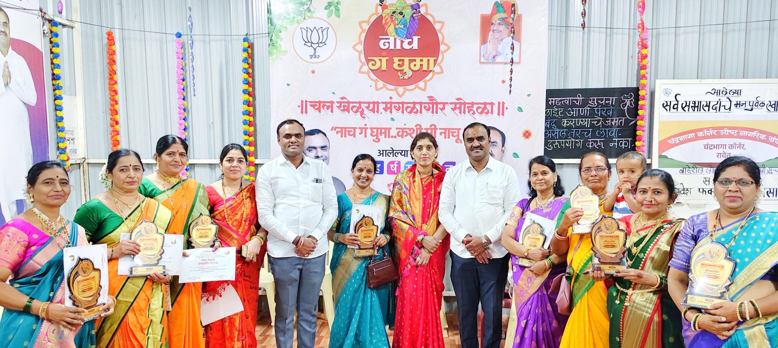 दिपक मधुकर भोंडवे सोशल फाउंडेशन आणि चंद्रभागा कॉर्नर महिला बचत गट यांच्या माध्यमातून ‘चला खेळू मंगळागौर’कार्यक्रम चंद्रभागा कॉर्नर,रावेत येथे अत्यंत उत्साहात पार पडला. श्रावण महिन्यात साजरा करण्यात येणाऱ्या या मंगळागौर सोहळेला मोठ्या संख्येत पारंपरिक वेशभूषेत महिलांनी उपस्थिती लावली होती.