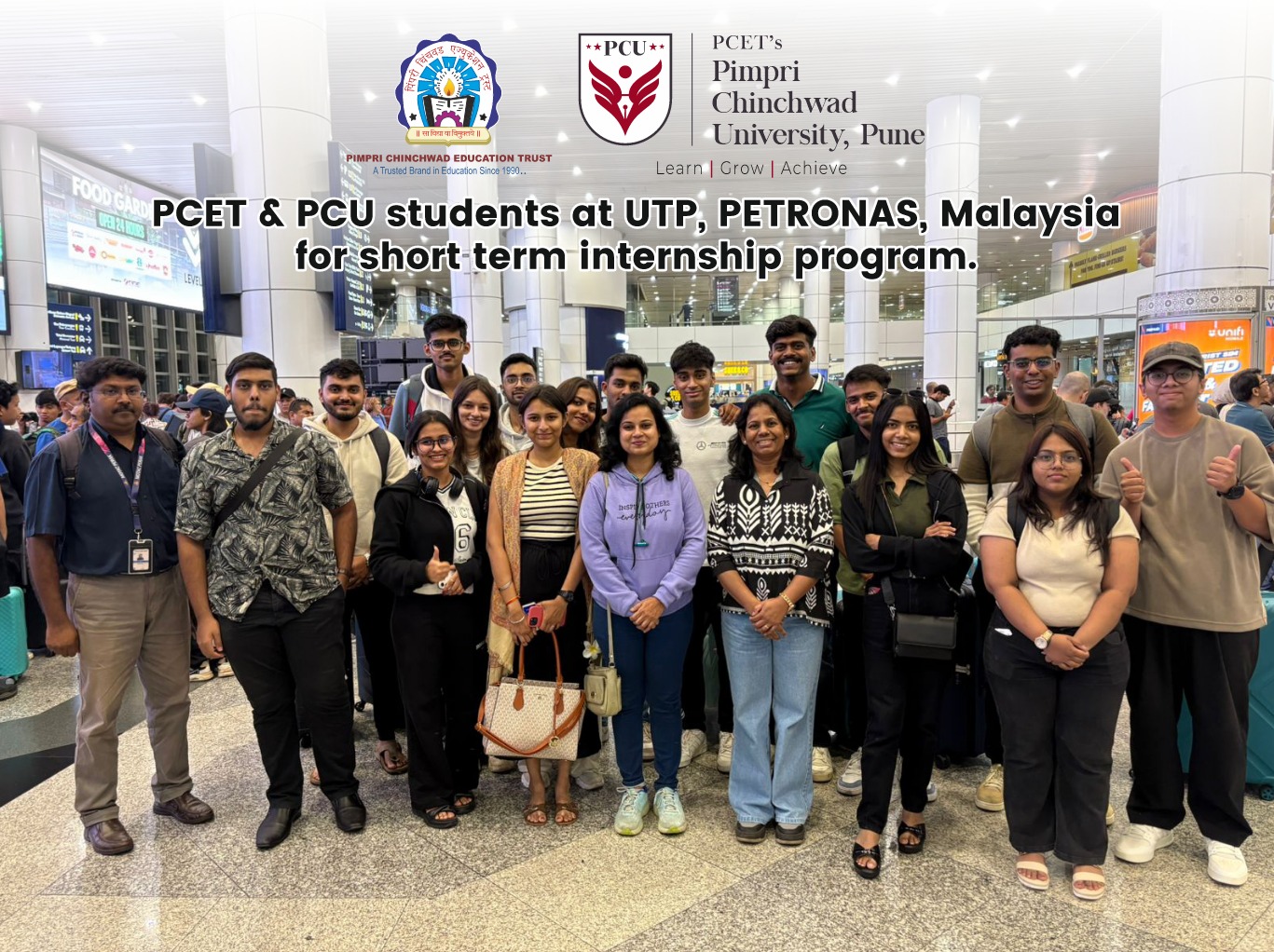 राष्ट्रीय, आंतरराष्ट्रीय स्तरावरील आघाडीच्या तंत्रज्ञान विद्यापीठ तसेच कंपन्यांमध्ये प्रत्यक्ष प्रकल्पांवर काम करण्याची आणि औद्योगिक वातावरणाचा अनुभव घेण्याची संधी पिंपरी चिंचवड विद्यापीठातील (पीसीयू) विद्यार्थ्यांना देण्यात येत आहे. त्या अंतर्गत मलेशिया मधील युनिव्हर्सिटी टेक्नोलॉजी पेट्रोनास (यूटीपी) येथे टर्म इंटर्नशिप प्रोग्रॅमसाठी पीसीयूच्या विद्यार्थ्यांची निवड झाली हे गौरवास्पद आहे असे पीसीयू चे कुलगुरू डॉ. गोविंद कुलकर्णी यांनी सांगितले.