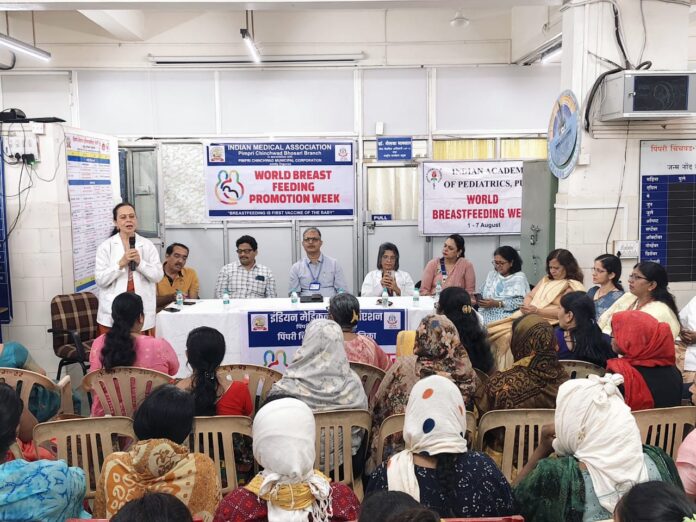 पिंपरी चिंचवड महापालिकेचा वैद्यकीय विभाग, भारतीय वैद्यकीय संघटना (आयएमए) भोसरी शाखा आणि इनरव्हील क्लब ऑफ प्राईड निगडी यांच्या संयुक्त विद्यमाने या कार्य़क्रमाचे आयोजन करण्यात आले होते. ‘स्तनपानाला प्राधान्य द्या – शाश्वत आधार व्यवस्था निर्माण करा” ही स्तनपान सप्ताह २०२५ ची अधिकृत संकल्पनेवर या कार्यक्रमात मातांना स्तनपानाच्या पोषणात्मक, मानसिक व भावनिक लाभांबद्दल सखोल माहिती देण्यात आली. स्तनपानामुळे बाळाला मिळणाऱ्या नैसर्गिक प्रतिकारशक्तीपासून ते आईच्या आरोग्यावर होणाऱ्या सकारात्मक परिणामांपर्यंत अनेक मुद्द्यांवर तज्ज्ञांनी मार्गदर्शन केले.